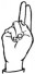 На ћирилици написано БУДИМИР ГОЛУБОВИЋ састоји се из 16 слова [?]. Исписано ћириличном једноручном азбуком за глувонеме: